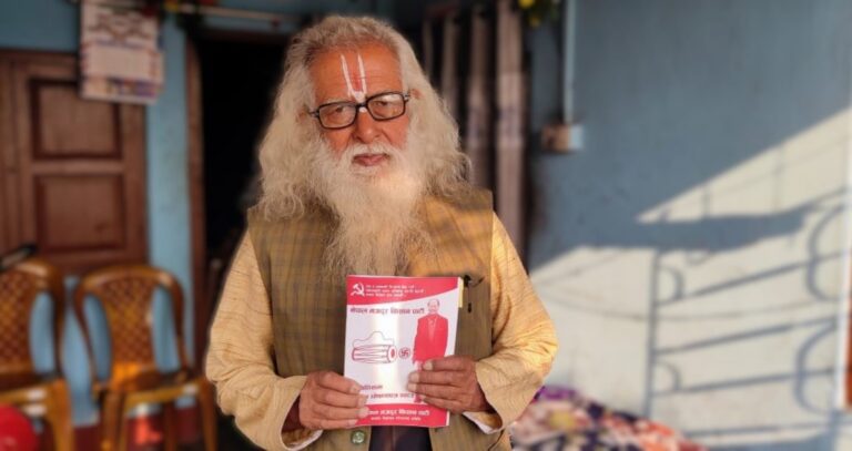 झापा। झोलामा बोकेका पर्चा र घोषणापत्र बाँड्दै झापा निर्वाचन क्षेत्र नं १ का गाउँबस्तीमा मत
