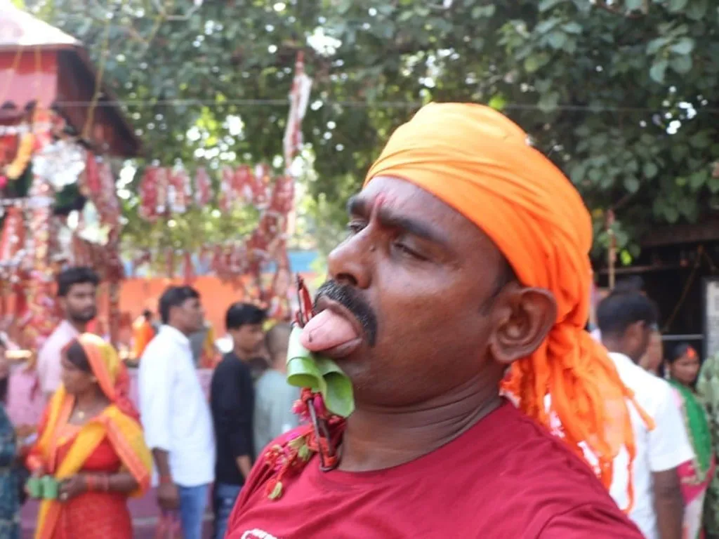 उनले केही समय अघिसम्म भक्तजनले देवीलाई जिब्रो काटेर चढाउने गरिए पनि अहिले जिब्रो छेडेर दर्शन गर्ने चलन रहेको बताए । महन्त योगीले देवीको मन्दिरमा पशुबली चढाउने परम्परा रहेको र केही भक्तजनले आफ्नै रगत चढाउने उद्देश्यले जिब्रो छेड्ने गरेको स्पष्ट पारे । उनका अनुसार नवरात्रको व्रत बसेका व्रतालु पुरुषले नवमीको दिन मन्दिरमा आफ्नै जिब्रो तिखो धातुले (त्रिशूल) छेड्ने गर्छन् । हरेक वर्ष एक सयभन्दा बढी भक्तजनले जिब्रो छेड्ने गरेका छन् ।