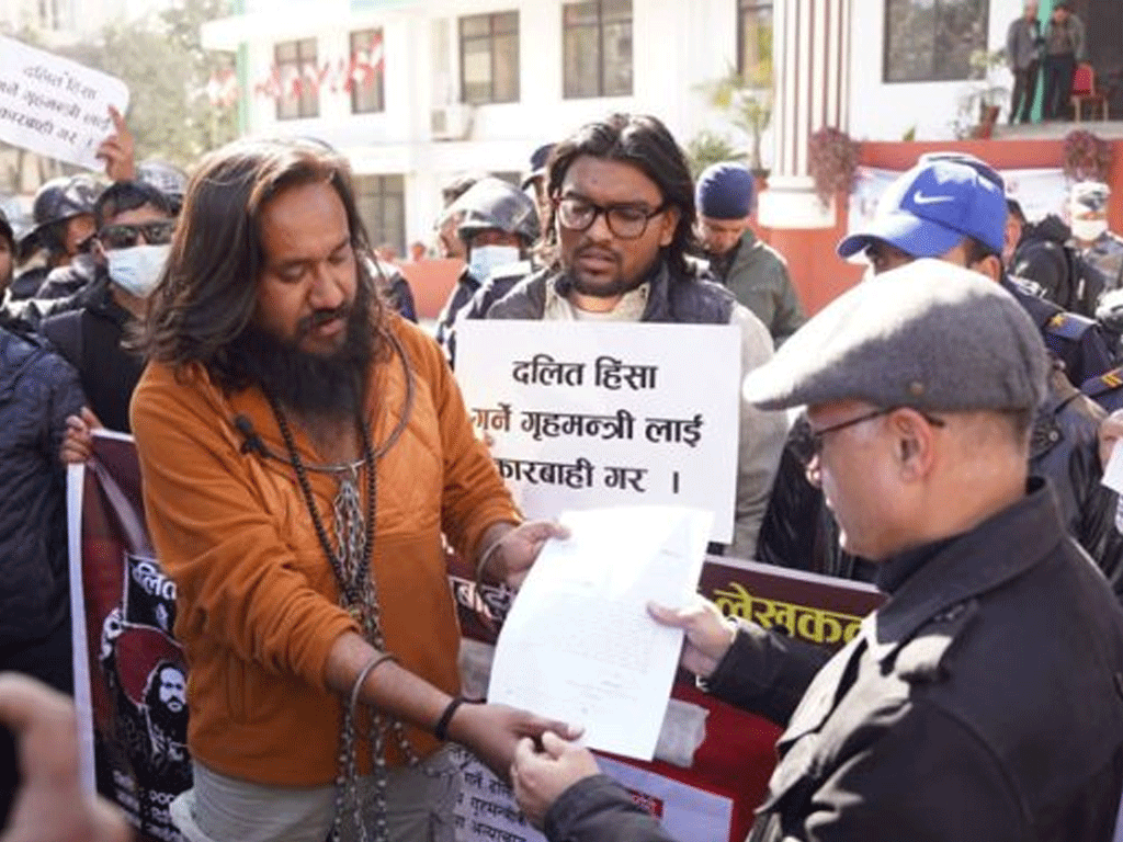 दलित अधिकारकर्मी खगेन्द्र सुनारको नेतृत्वमा केन्द्रीय कार्यालय, सानेपा पुगेको टोलीले विरोध प्रदर्शन गरेको हो ।