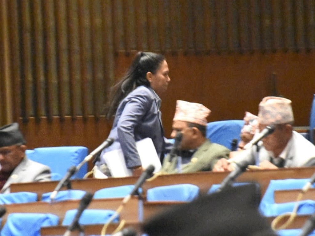 सोमवार रास्वपाबाट आकस्मिक समयमा मनिष झा बोलेका थिए । आकस्मिक समय सकिएर शून्य समय सुरु हुन लाग्दा उठेर टेबल ठटाएकी श्रेष्ठले सभामुखको रुलिङ अस्वीकार गर्दै औँला ठड्याएर आक्रोश व्यक्त गरिन् । तर सभामुखले समय नदिएपछि उनी झोक्किँदै बाहिरिएकी थिइन् ।