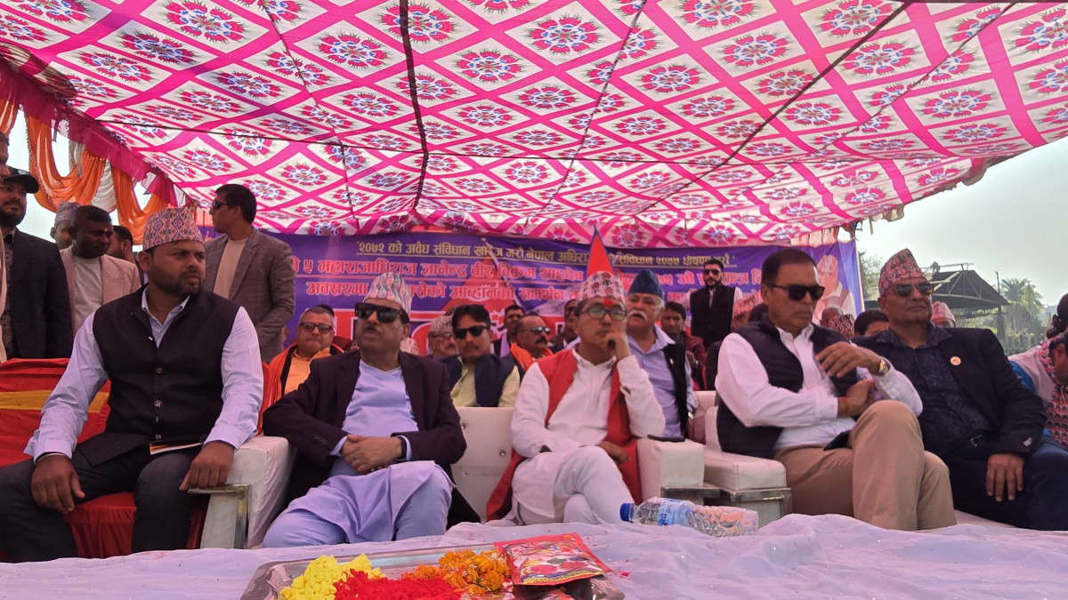 उनले भने ‘राजाले पहाडमा नभएर मधेसको जनताले रोजगारी पाओस् । मधेसको जनताले गरिखाने वातावरण निर्माण होस् भनेर खोलेको उद्योगधन्दाहरू बेचेर खाए । कृषि औजार कारखाना, चिनी कारखाना, जनकपुर चुरोट कारखाना बन्द गरे र आज दर्जनौँ भ्रष्टाचार काण्डहरूमा उनीहरूको नाम मुछिएको छ । त्यस्ता नेताहरू अहिले राजालाई ललकार्दै छन् । राजा चुनाव लड्न आऊ भनेर । म भन्छु, तपाईंहरुसँग चुनाव हामी लड्छौँ । राजाले चुनाव लड्ने होइन । चुनाव लड्नको लागि हामी जस्ता मानिसहरु छौँ । हामीले खोजेको राजा, हामीले स्थापित गर्न खोजेको राजा तपाईंहरुसँग चुनाव लड्ने होइन । राजनैतिक दलको राजा होइन, देशको राजा खोजेको हो । राजा राजनीतिक दल भन्दा र भोटको राजनीति भन्दा माथि रहने संस्था हो ।’