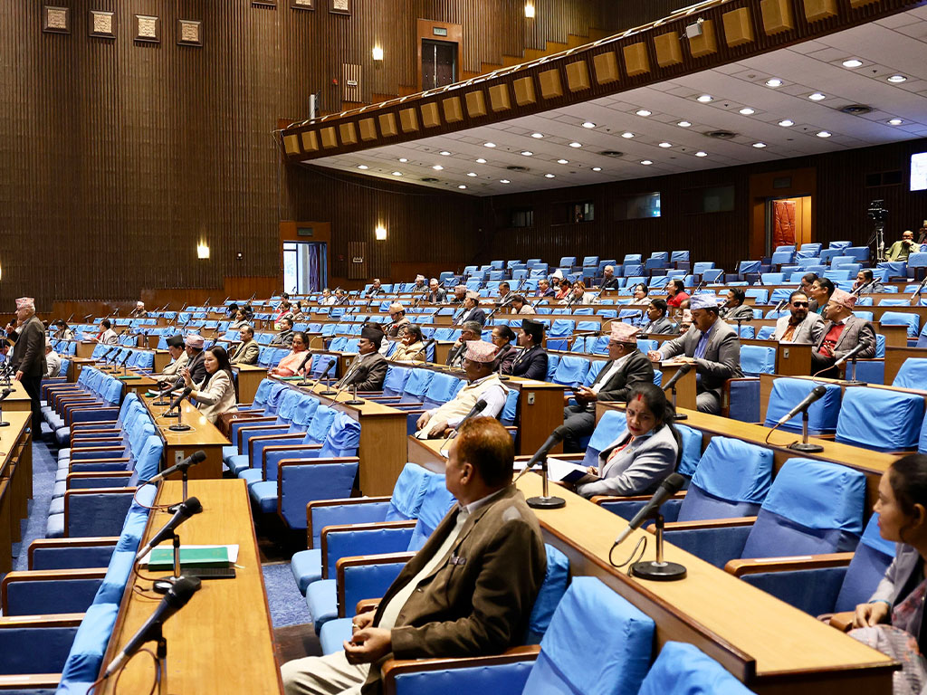 काठमाडौँ। प्रतिनिधि सभाको आजको बैठकमा प्रतिस्थापन विधेयक प्रस्तुत गर्ने कारबाही अघि बढिरहेका बेला गणपूरक संख्यामाथि प्रश्न उठेको छ । यद्यपि तीन मिनेटको जनाउ घण्टीपछि गणपूरक संख्या पुगेको यकिन भएको छ ।