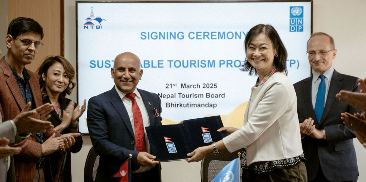 काठमाडौँ । नेपाल पर्यटन बोर्ड र संयुक्त राष्ट्रसंघीय विकास कार्यक्रम (युएनडिपी) ले संयुक्त रूपमा ‘दिगो पर्यटन परियोजना (एसटिपी)’ कार्यक्रम सुरु गर्ने भएका छन् । आज यहाँ बोर्डमा आयोजित कार्यक्रममा सम्झौता पत्रमा हस्ताक्षर भएको हो ।