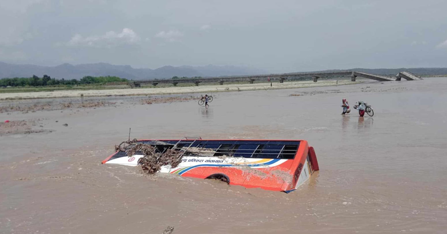 काठमाडौं- उदयपुरको चौदण्डीगढी नगरपालिका-५ स्थित सिवाई-बेल्हा गाउँको बीचमा रहेको त्रियुगा नदीको बाढीले जन्ती पुर्‍याएर फर्किएको बस बगाएको छ ।