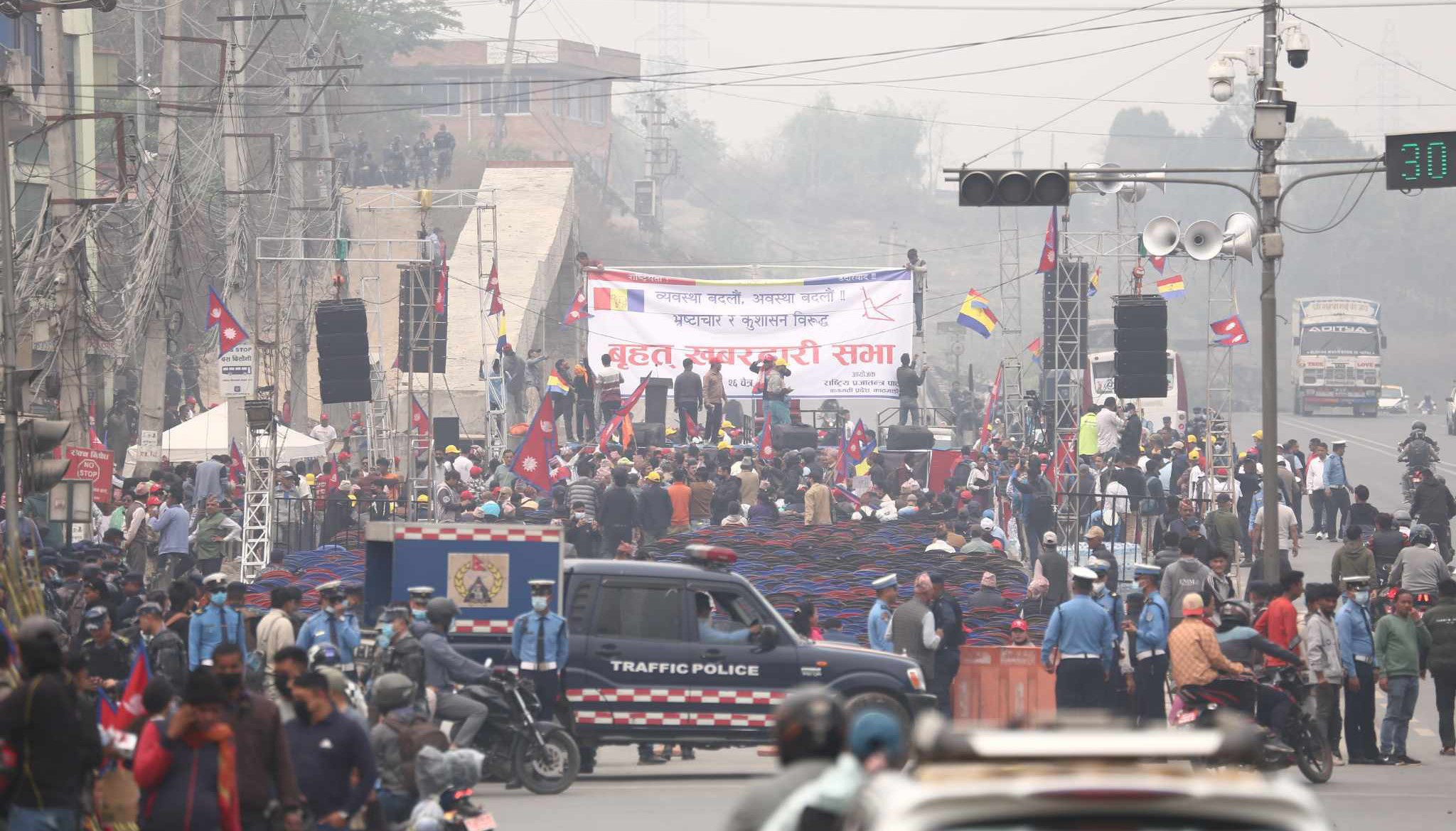 राजावादी समूहले बिहीबारदेखि वर्तमान व्यवस्थालाई चुनौती दिँदै आन्दोलन सुरु गरेका छन् । यसैबीच प्रहरीले काठमाडौँको नागढुंगा–नौबिसे सडकखण्डमा बस पल्टिँदा केही समय सडक अवरुद्ध हुन पुगेको जनाएको छ । दाङबाट काठमाडौँ आउँदै गरेको लुम्बिनी प्रदेश ०२–००१ ख ०१७७ नम्बरको बस आज बिहान पौने तीन बजेतिर सडकको नालीमा खसेको थियो । सो बसले सडकको केही भाग अवरुद्ध हुँदा सडक जाम भएको प्रहरीको भनाइ छ ।