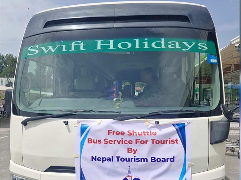 काठमाडौँ । नेपाल पर्यटन बोर्डले पर्यटकहरूको सहजताका लागि नि:शुल्क शटल बस सेवा सञ्चालनमा ल्याएको छ ।