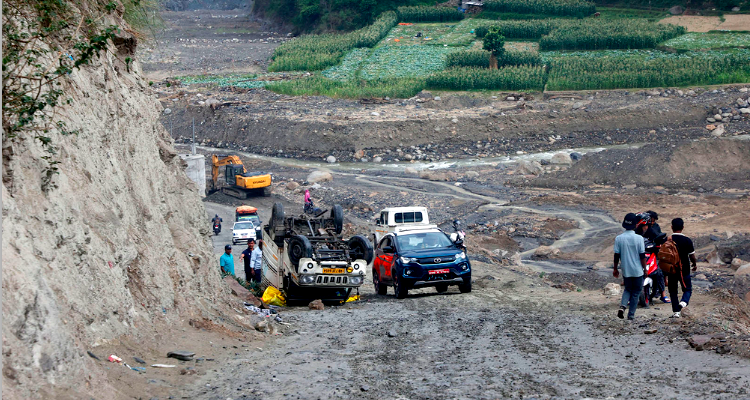 काभ्रेको चौकीडाँडा खण्ड सबैभन्दा जोखिमपूर्ण छ। बाढीले सडक भत्काएपछि रोशीखोला किनारमा अस्थायी बाटो बनाइएको छ, तर यो खण्डमा पूर्वबाट काठमाडौं आउने सवारीहरू उकालो चढ्दा चिप्लिन्छन्। मंगलबार मात्र काँकडभिट्टाबाट काठमाडौं आउँदै गरेको भारतीय पिकअप भ्यान पल्टिँदा चालकलाई सामान्य चोट लाग्यो। भकुन्डेबेसी प्रहरी चौकीका असई रोहित हुमागाईं भन्छन्, “चार महिनामा चार सवारी पल्टिसके, तर सडकको ग्रेड सुधारिएको छैन।”