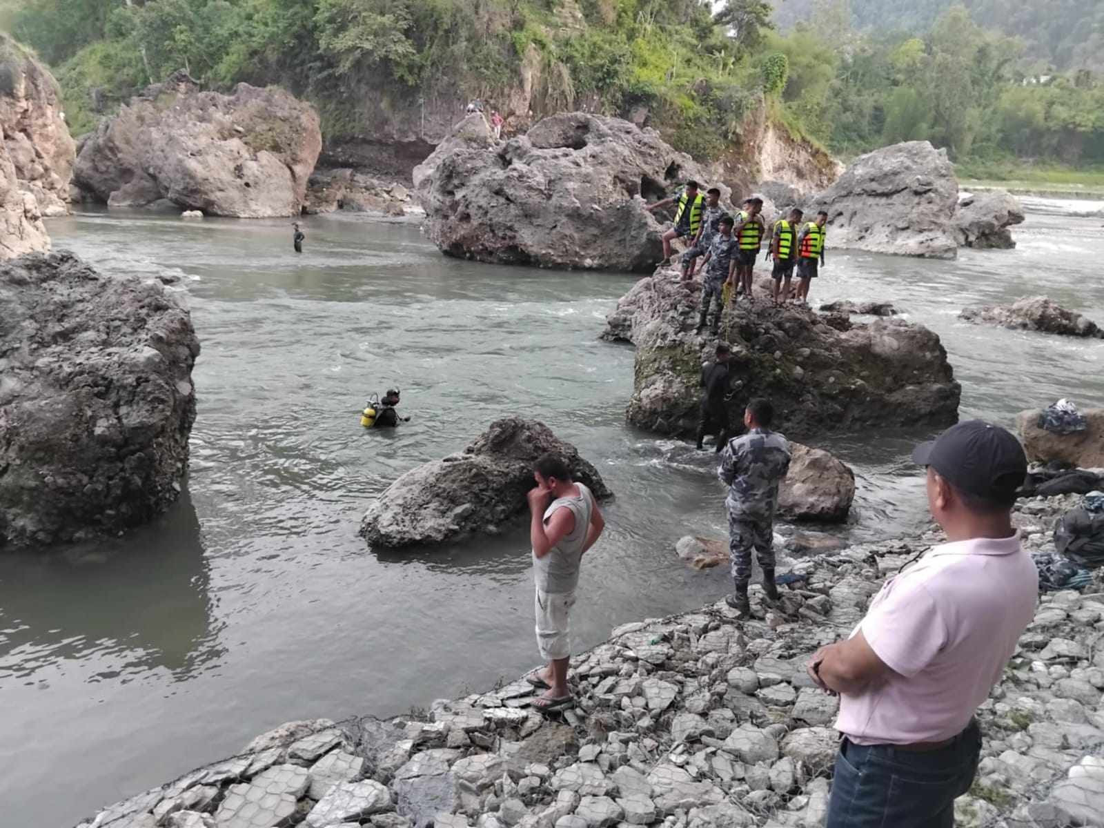 सशस्त्र प्रहरी बलका वरिष्ठ प्रहरी उपरीक्षक नेत्र कार्कीको नेतृत्वमा ३५ सदस्यीय टोलीले बिहानैदेखि खोजी कार्य सुरु गरेको थियो। घटनास्थलबाट करिब ३ किलोमिटर दक्षिणमा राजवंशीको शव मृत अवस्थामा भेटिएको हो। “खोजी कार्यमा सशस्त्र प्रहरीको विशेष टोली खटिएको छ, सुरज साउदको अवस्था पत्ता लगाउन हरसम्भव प्रयास भइरहेको छ,” खतिवडाले भने।