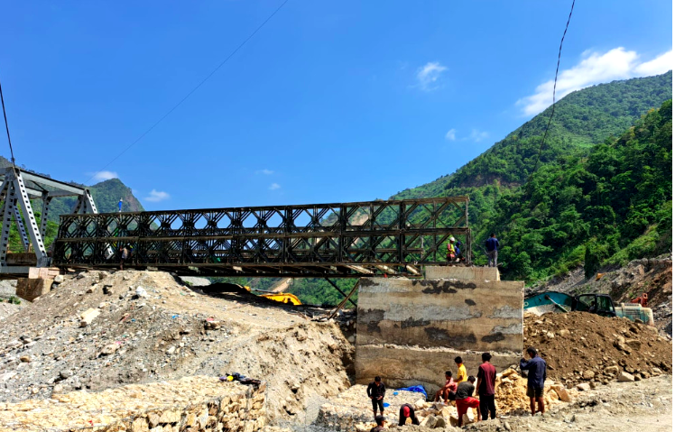 गत असोज ११ र १२ गते वाग्मती नदीमा आएको बाढीले मकवानपुरको भीमफेदी गाउँपालिका–८ र ललितपुरको वाग्मती गाउँपालिका–२ बगुवास्थित पुलको मकवानपुरतर्फको एक स्पान बगाएको थियो। त्यसपछि माटो र बालुवाको अस्थायी पहुँच मार्ग बनाएर सडक सञ्चालन गरिएको थियो, तर वर्षायाममा पटक–पटक बाढीले मार्ग बगाएपछि बेलिब्रिज जडान गरिएको हो। बेलिब्रिज जडान र संरक्षण कार्यका लागि निर्माण कम्पनीलाई करिब साढे एक करोडको ठेक्का दिइएको आयोजनाले जनाएको छ।
