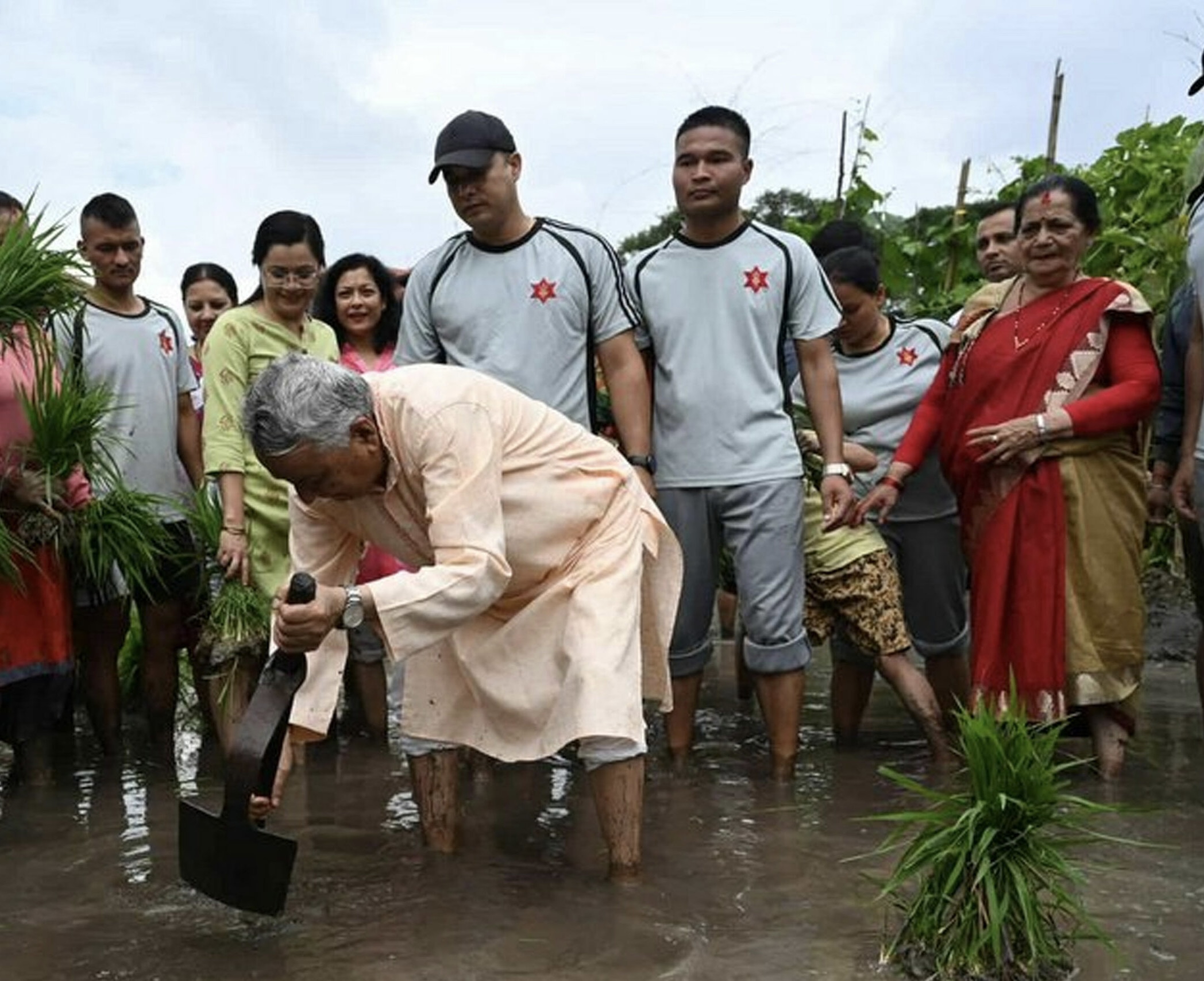 रोपाइँमा नेपाली सेनाको टोली, कर्मचारी र राष्ट्रपति पौडेलको परिवारका सदस्य लगायत सहभागी थिए। आज असार १५ को दिन धान रोपाइँसँगै दही चिउरा खाने प्रचलन नेपाली समाजमा छ ।