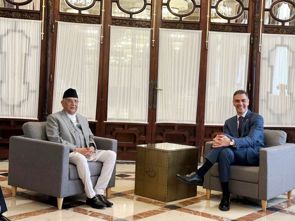 काठमाडौँ । प्रधानमन्त्री केपी शर्मा ओली र स्पेन सरकारका अध्यक्ष (प्रधानमन्त्री) पेड्रो साञ्चेजबीच दुई पक्षीय भेटवार्ता भएको छ ।