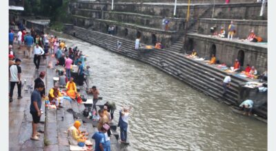 काठमाडौ – पशुपतिनाथ मन्दिर परिसर र बागमती नदी किनारमा शनिबार जनै पूर्णिमाको विशेष रौनक देखिएको छ। हिन्दु धर्मावलम्बीहरूको महत्वपूर्ण पर्व जनै पूर्णिमा (रक्षाबन्धन) को अवसरमा हजारौँ भक्तजनले स्नान, पूजा र यज्ञोपवीत (जनै) ग्रहण गर्न पशुपतिनाथ मन्दिर पुगेका छन्। बिहानैदेखि मन्दिर परिसरमा भक्तजनको ठूलो भीड देखिएको थियो।