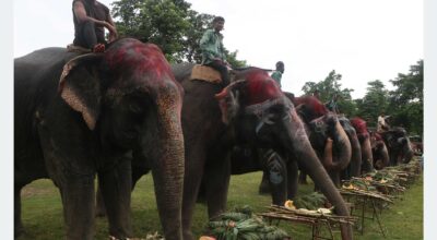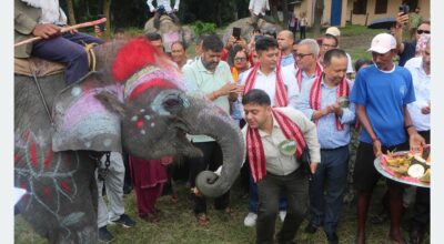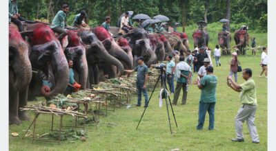 चितवन । १४औँ अन्तर्राष्ट्रिय हात्ती दिवस–२०२५’को अवसरमा मङ्गलबार चितवनको सौराहास्थित युनाइटेड हात्ती सञ्चालन सहकारी संस्थाले विशेष कार्यक्रम आयोजना गरेको छ। कार्यक्रममा सरकारी तथा निजी स्वामित्वका ६० वटा हात्तीलाई २० भन्दा बढी परिकार वनभोजको रूपमा खुवाइएको हो।