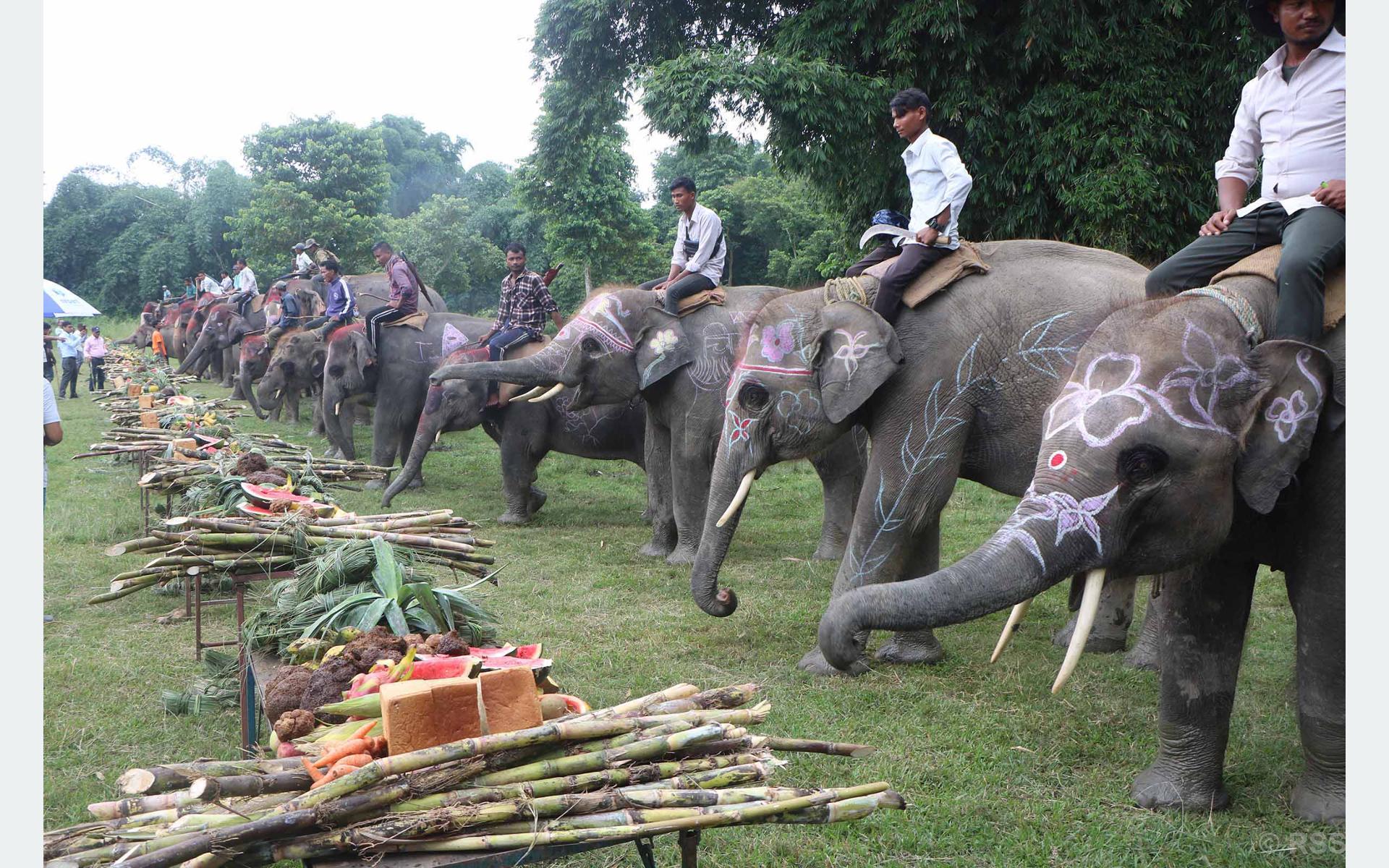 धान, चना, सख्खर, उखु, मेवा, स्याउ, केरा, गाजरलगायत हात्तीलाई मनपर्ने परिकारहरू कार्यक्रम स्थलमै सजाइएका थिए। सहभागी हात्तीहरूले पालैपालो विभिन्न परिकारको स्वाद लिँदा स्थानीयवासी, हात्ती व्यवसायी तथा पर्यटकले उत्साहपूर्वक अवलोकन गरेका थिए।