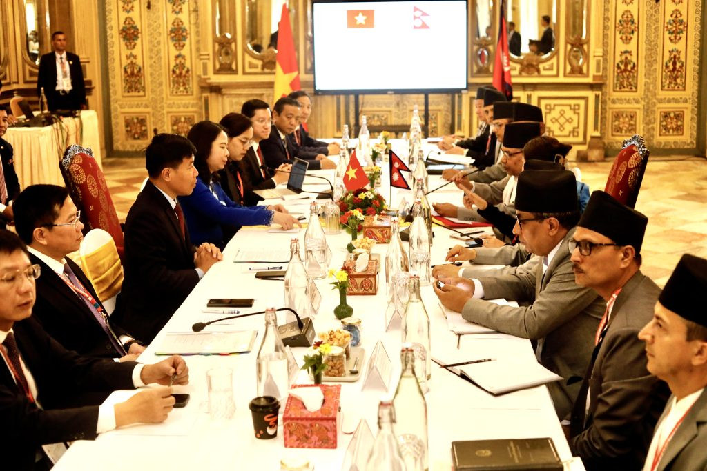 काठमाडौं । उपराष्ट्रपति रामसहायप्रसाद यादव र नेपाल भ्रमण आएकी समाजवादी गणतन्त्र भियतनामकी उपराष्ट्रपति भो थि आन सुआनलगायत प्रतिनिधिमण्डलको द्विपक्षीय बैठक काठमाडौंमा सुरु भएको छ ।