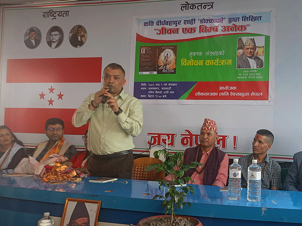 काठमाडौँमा आयोजित ‘जीवन एक बिम्ब अनेक’ नामक मुक्तक संङग्रहको विमोचन कार्यक्रमलाई सम्बोधन गर्दै पद छाड्छु भनेर प्रधानमन्त्रीले काँग्रेसलाई सम्झाइराख्नु नपर्ने बताए । अहिले दलहरू सत्ता राजनीतिमा केन्द्रित रहेको भन्दै नेताहरूले डर र लोभबाट मुक्त हुनुपर्ने बताए ।
