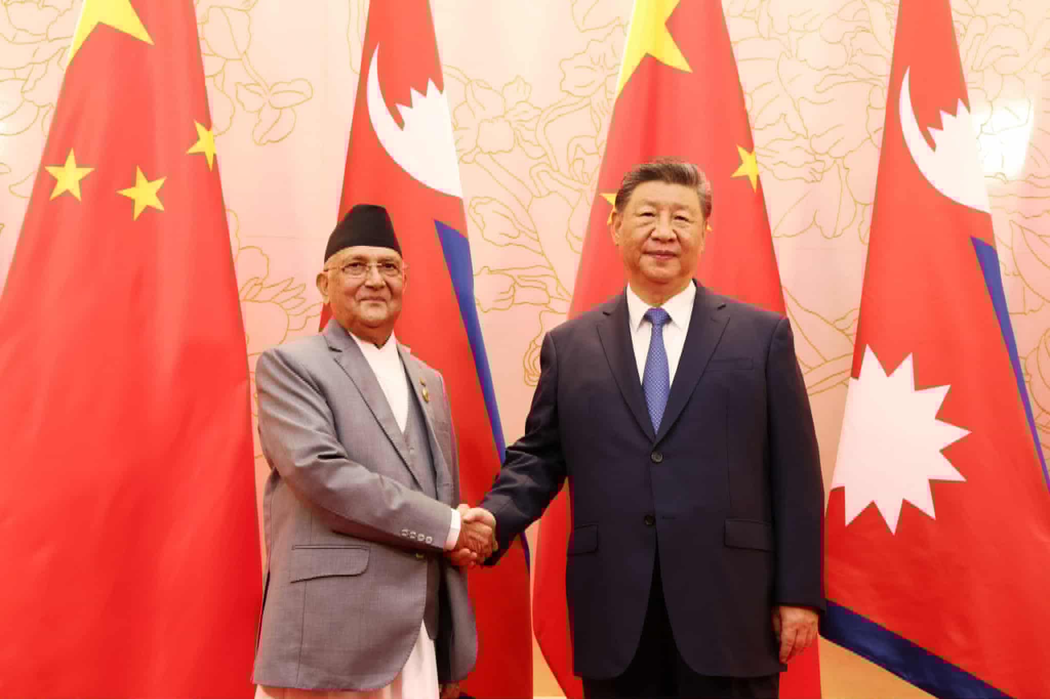 काठमाडौं– प्रधानमन्त्री केपी शर्मा ओलीले चिनियाँ राष्ट्रपति सी जिन्पिङसँग भेटवार्ता गरेका छन् । चीन भ्रमणमा रहेका प्रधानमन्त्री ओलीले राष्ट्रपति सीसँग भेटवार्ता गरेको चीनको सिन्ह्वा समाचार संस्थाले जनाएको छ ।