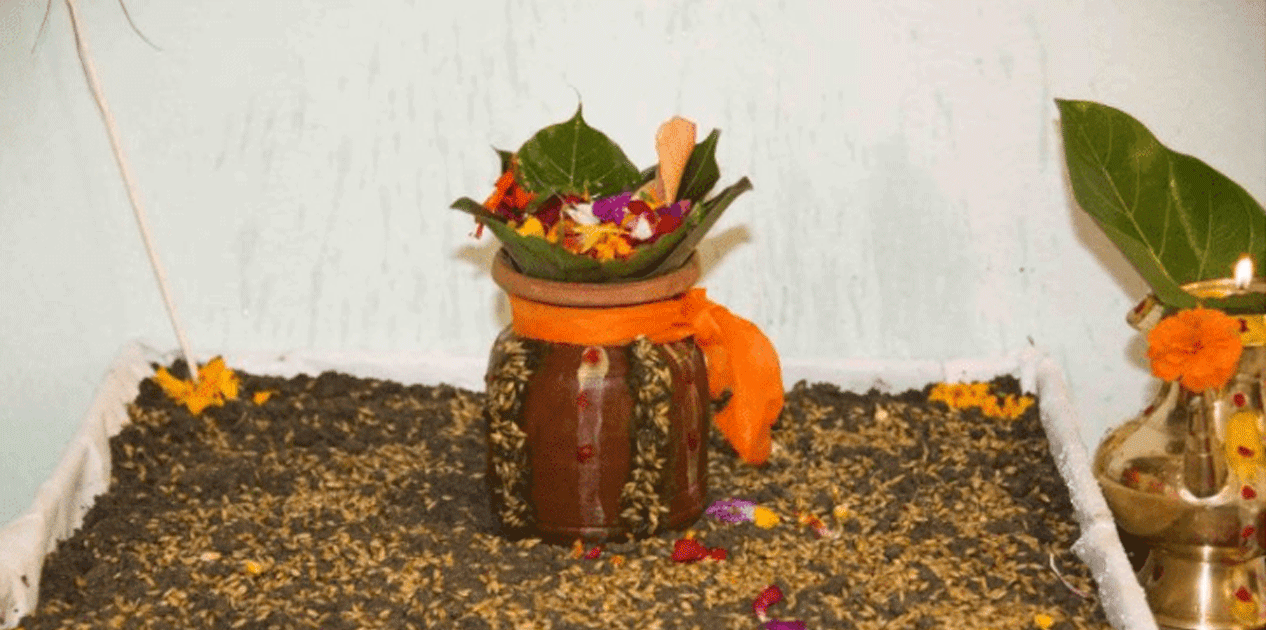 आज बिहानै नित्य कर्म समाप्त गरी नजिकको नदी वा चोखो स्थलबाट बालुवा वा माटो ल्याई गाईको गोबरले लिपपोत गरिएको पूजा कोठा अथवा दसैँ घरमा विधिपूर्पक राखेर त्यसमाथि यव अर्थात् जौ रोप्ने गरिन्छ । यस कार्यलाई जमरा राख्ने पनि भनिन्छ । यव अङ्कुर दुर्गा देवीको प्रिय वस्तु भएकाले आज यव रोपण गरी दुर्गालाई चढाएर विजयादशमीको दिन टीका प्रसादसितै समृद्धिको प्रतीक पहेँलो जमरा पनि ग्रहण गरिन्छ ।