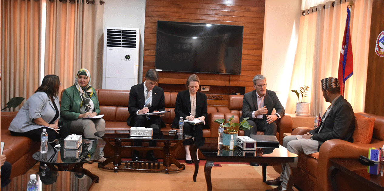काठमाडौँ । सञ्चार तथा सूचना प्रविधि मन्त्री जगदीश खरेलसँग नेपालका लागि संयुक्त राज्य अमेरिकाका राजदूत डिन आर थम्प्सनले शिष्टाचार भेट गरेका छन् ।