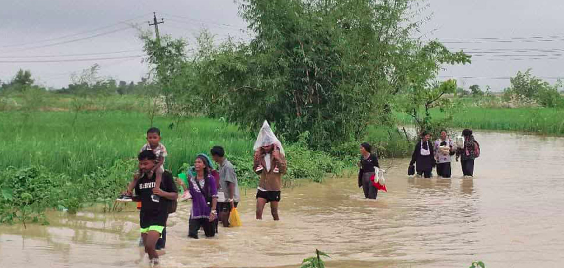काठमाडौ । निरन्तर वर्षाको कारण उदयपुरको बेलका नगरपालिकामा सप्तकोशी तटीय क्षेत्रका बस्ती डुबानमा परेका छन् । उदयपुरका प्रमुख जिल्ला अधिकारी प्रेमप्रसाद लुइँटेलका अनुसार सप्तकोशी तटीय क्षेत्रका बस्तीमा बाढी पस्दा डुबानमा परेका हुन् । उनले भने, ‘सप्तकोशीको बाढी नपसे पनि स्थानीय खोलानालामा बाढी आउँदा र आकाशबाट परेको पानीको निकास नहुँदा बस्ती डुबानमा परेका छन् । जोखिममा परेका ज्येष्ठ नागरिक, गर्भवती महिला, बालबालिकासहित १२८ जनलाई उद्धार गरिएको छ ।’ उद्धारका लागि नेपाली सेना, सशस्त्र प्रहरी, नेपाल प्रहरीको टोली खटिएको थियो ।