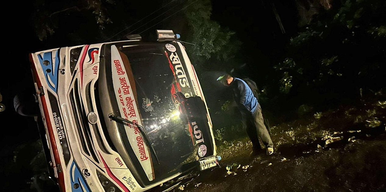 राति करिब २ बजे काठमाडौँबाट धनगढीतर्फ जाँदै गरेको बा.प्र.०१-००६ ख ८५०६ नं.को यात्रुवाहक बसले एक पैदल यात्रीलाई ठक्कर दिई अनियन्त्रित भई सडकमा पल्टिँदा दुर्घटना भएको वडा प्रहरी कार्यालयले जनाएको छ । बसले ठक्कर दिएका अन्दाजी ५०/५५ वर्षका पुरुषको भने मृत्यु भएको छ ।