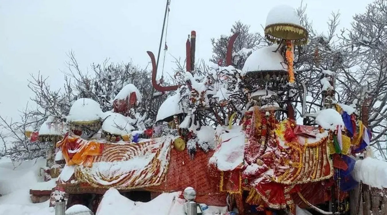 ताप्लेजुङको पाथीभरा मन्दिर क्षेत्रमा वर्षको पहिलो हिमपात
