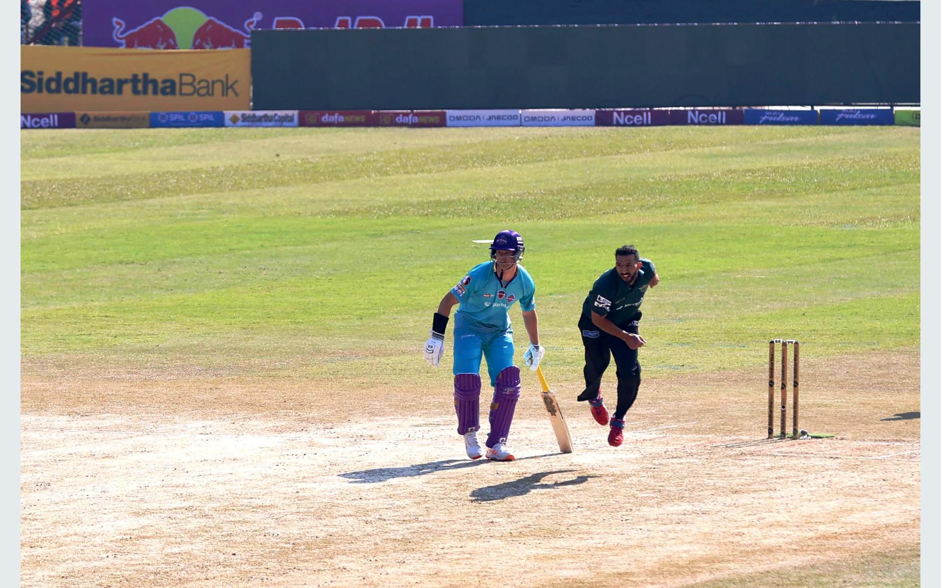 त्रिवि अन्तर्राष्ट्रिय क्रिकेट रंगशालामा टस हारेर पहिला ब्याटिङको निम्तो पाएको काठमाडौंले निर्धारित २० ओभरमा ८ विकेटको क्षतिमा १६५ रन बनाएको हो ।