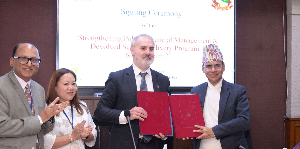 काठमाडौँ । नेपाल सरकार र एसियाली विकास बैंकबीच सार्वजनिक वित्तीय व्यवस्थापन तथा विकेन्द्रित सेवा प्रवाह सुदृढीकरण कार्यक्रम (सब-प्रोग्राम-२) का लागि सहुलियतपूर्ण ऋण सम्झौतामा हस्ताक्षर गरिएको छ।