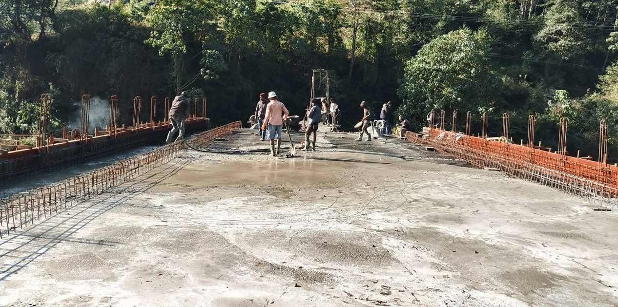 पर्वत । भुरुङ्दीखोलामा निर्माणाधीन मोटरेबल पुल निर्माणको अन्तिम चरणमा पुगेको छ ।