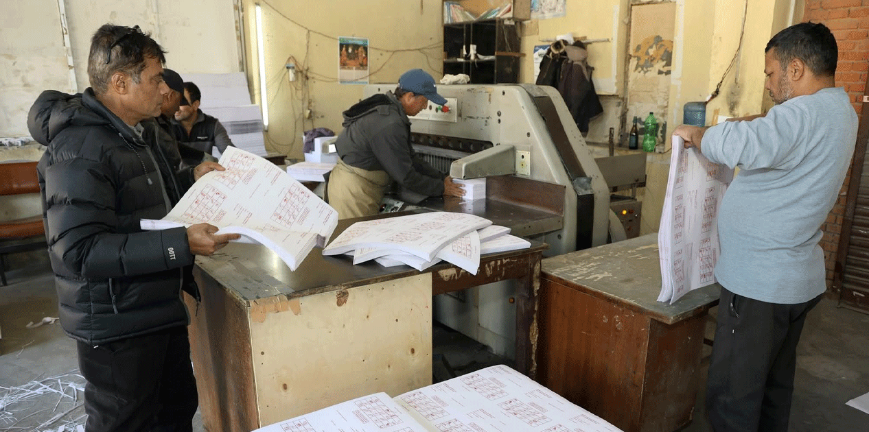 काठमाडौँ । फागुन २१ गतेका लागि तय भएको प्रतिनिधि सभा निर्वाचनका लागि नमुना मतपत्र छपाइको काम धमाधम भइरहेको छ । जनक शिक्षा सामग्री केन्द्रमा मतपत्र छपाइको काम जारी छ ।