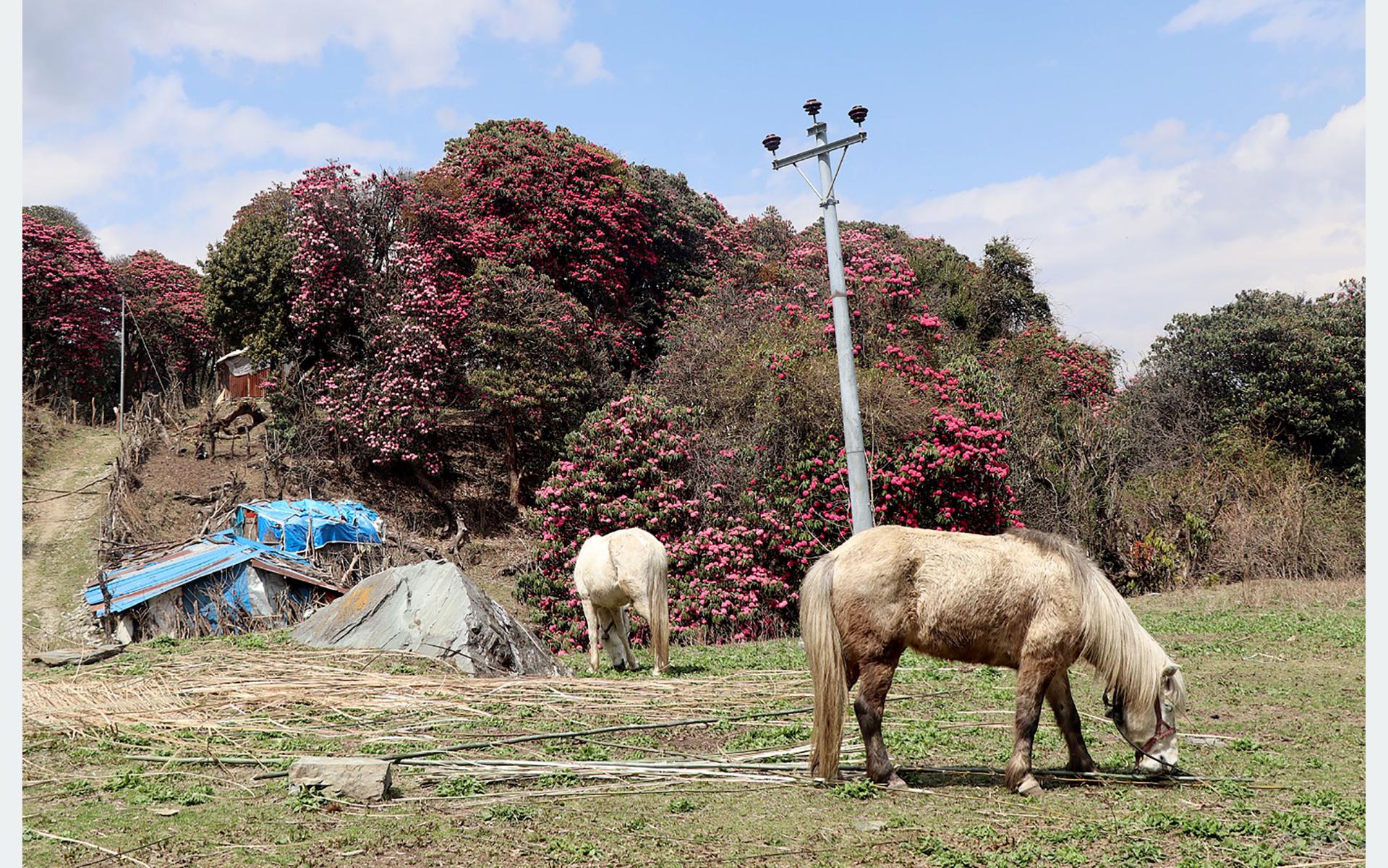 घोडेपानी ढकमक्क लालीगुराँसले रङ्गियो, घोडाहरूको दृश्यले थप आकर्षण