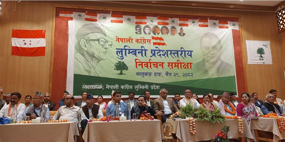 दाङ । नेपाली कांग्रेसको लुम्बिनी प्रदेशस्तरीय निर्वाचन समीक्षा कार्यक्रम दाङको भालुवाङमा सुरू भएको छ । भालुवाङस्थित होटल पौवामा आयोजित कार्यक्रममा पार्टी सभापति गगन थापा, उपसभापति विश्वप्रकाश शर्मा, पुष्पा भुसाल, महामन्त्री प्रदीप पौडेल, सहमहामन्त्री योगेन्द्र चौधरी, डिला संग्रौला लगायत केन्द्रीय नेताहरू सहभागी छन् । कार्यक्रममा लुम्बिनी प्रदेशबाट प्रतिनिधित्व गर्ने केन्द्रीय सदस्यहरू, प्रदेश कार्यसमिति, १२ वटै जिल्लाका सभापति, प्रदेशसभा सदस्य तथा स्थानीय तहका प्रमुख/उपप्रमुखहरूको उपस्थिति रहेको छ ।