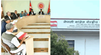 काठमाडौँ । कांग्रेस र एमालेको केन्द्रीय समिति बैठक बिहीबार एकैदिन बस्दैछ । कांग्रेस सभापति शेरबहादुर