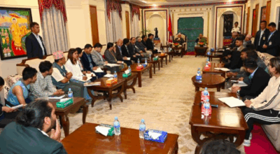 काठमाडौ । राष्ट्रपति रामचन्द्र पौडेल र जेनजी आन्दोलनका प्रतिनिधिहरूबीच आज शीतलनिवासमा भएको वार्ता सकारात्मक वातावरणमा