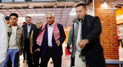 काठमाडौं– नेपाली कांग्रेसका सभापति शेरबहादुर देउवा दम्पती सिंगापुरमा उपचार सकेर शुक्रबार राति काठमाडौँ आइपुगेका छन्।