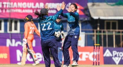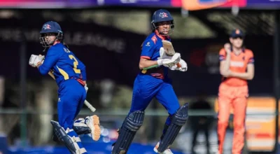 काठमाडौँ । त्रिकोणात्मक महिला टी-२० शृङ्खलामा बिहीबार नेदरल्याण्डस र थाइल्याण्डबीच प्रतिस्पर्धा हुँदैछ। खेल त्रिवि क्रिकेट मैदानमा मध्यान्ह सवा १२ देखि शुरु हुने छ। जारी सिरिजमा अहिलेसम्म थाइल्याण्डले खेलेका ४ खेलमा चारै खेल जितेर ८ अंकसहित शीर्ष स्थानमा रहेको छ। त्यस्तै, नेदरल्याण्डसले भने अहिलेसम्म खेलेका ५ मध्ये ३ खेलमा जित हासिल गरेको छ र ६ अंकसहित…