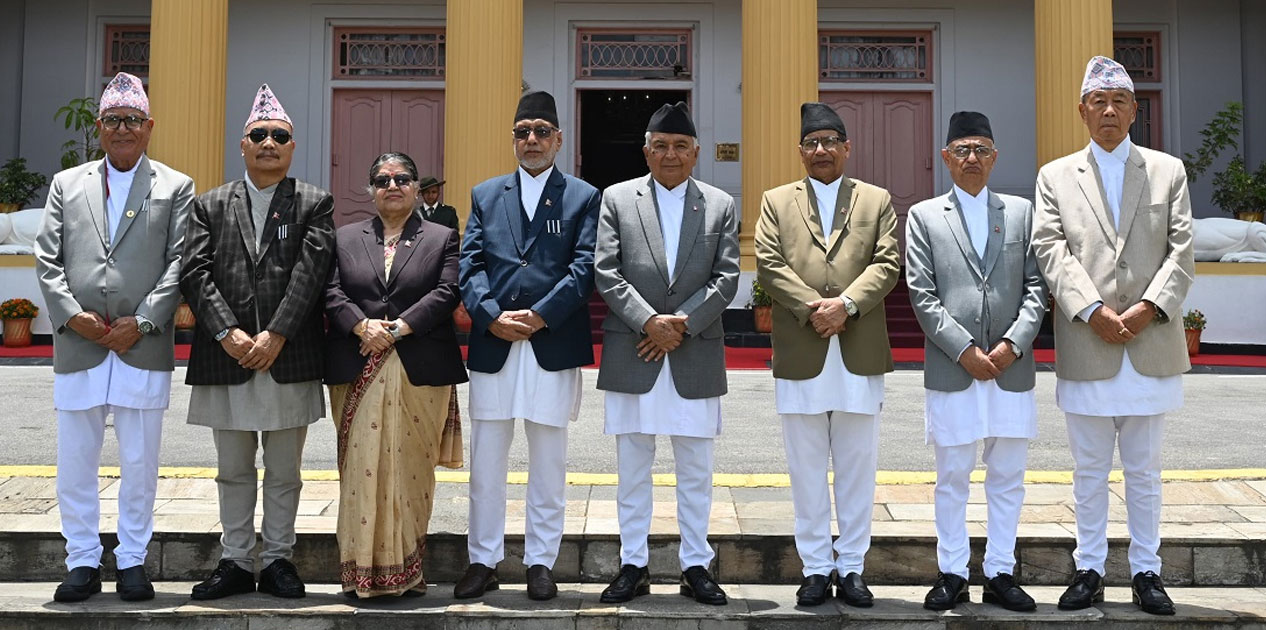 काठमाडौँ । सात वटै प्रदेशका प्रमुखहरूले राष्ट्रपति रामचन्द्र पौडेलसँग शिष्टाचार भेट गरेका छन् । बुधबार बिहान राष्ट्रपति भवन शीतल निवासमा सात वटै प्रदेशका प्रदेश प्रमुखहरूले शिष्टाचार भेट गरेका हुन् । हाल कोशी प्रदेश प्रमुख परशुराम खापुङ्, मधेश प्रदेश प्रमुख सुमित्रा सुवेदी भण्डारी, बागमती प्रदेश प्रमुख दीपकप्रसाद देवकोटा, गण्डकी प्रदेश प्रमुख डिल्लीराज भट्ट, लुम्बिनी प्रदेश प्रमुख…