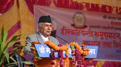 काठमाडौं– प्रधानमन्त्री केपी शर्मा ओलीले तामाङ समुदायको नयाँ वर्ष सोनाम ल्होसारको अवसरमा शुभकामना व्यक्त गरेका छन् । प्रधानमन्त्रीले सामाजिक सञ्जाल फेसबुकमा आफ्नो परम्परागत पहिरनमा सजिएर डम्फु हातमा लिएका तामाङ समुदायका नारीहरूको तस्बिरसहित सोनाम ल्होसार मनाउने सबैमा हार्दिक शुभकामना व्यक्त गरेका हुन् । उनले सामाजिक सञ्जालमा लेखेका छन्, ‘आज तामाङ समुदायको नयाँ वर्ष, अर्थात् सोनाम ल्होछार…